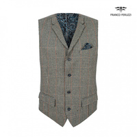 KAMIZELKA MĘSKA FRANCO FERUZZI HUGO COL. 5 BRĄZOWA W KRATKĘ WEŁNA